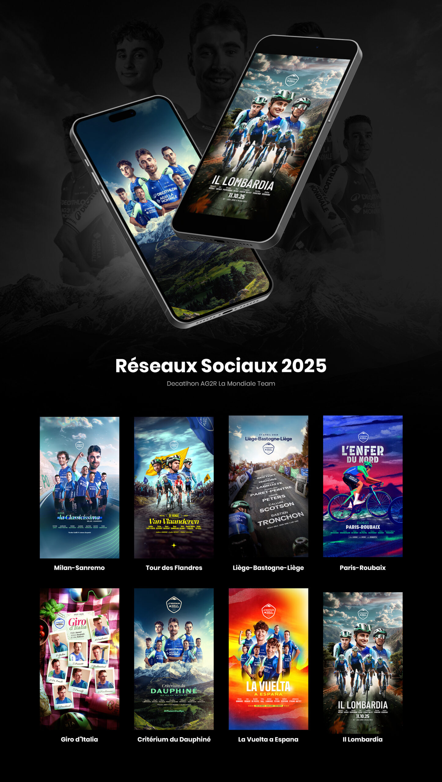 Réalisation des visuels d’annonce d’équipe pour les plus grandes courses du calendrier World Tour 2025.